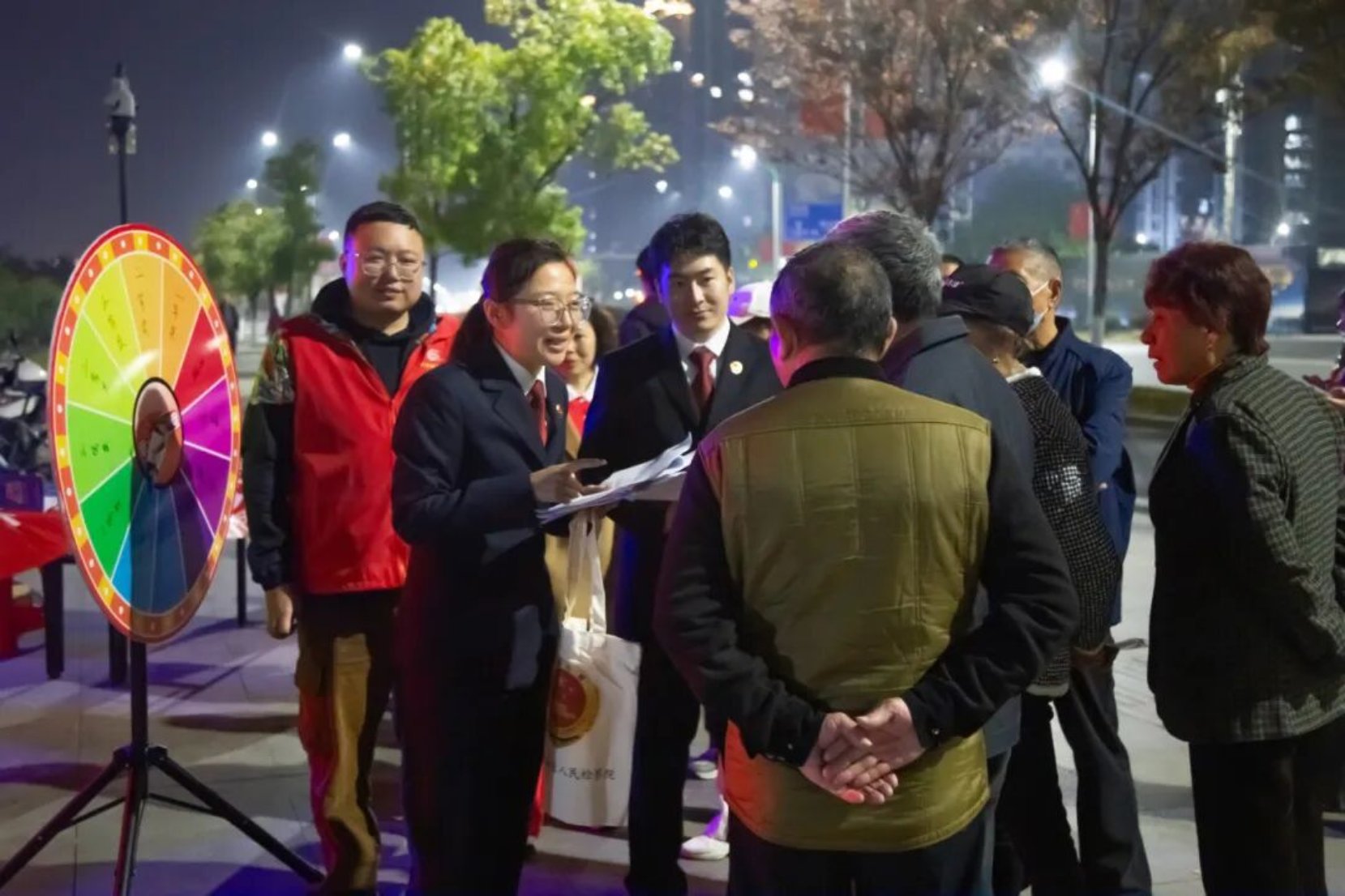 这个法治套圈太有意思了,套中就能领普法小礼品!刚答对了宪法小问题,又学到知识又拿奖品!宣传活动中,南门小街的法治夜市摊位前,孩子们拿着刚赢来的普法钥匙扣笑得合不拢嘴。